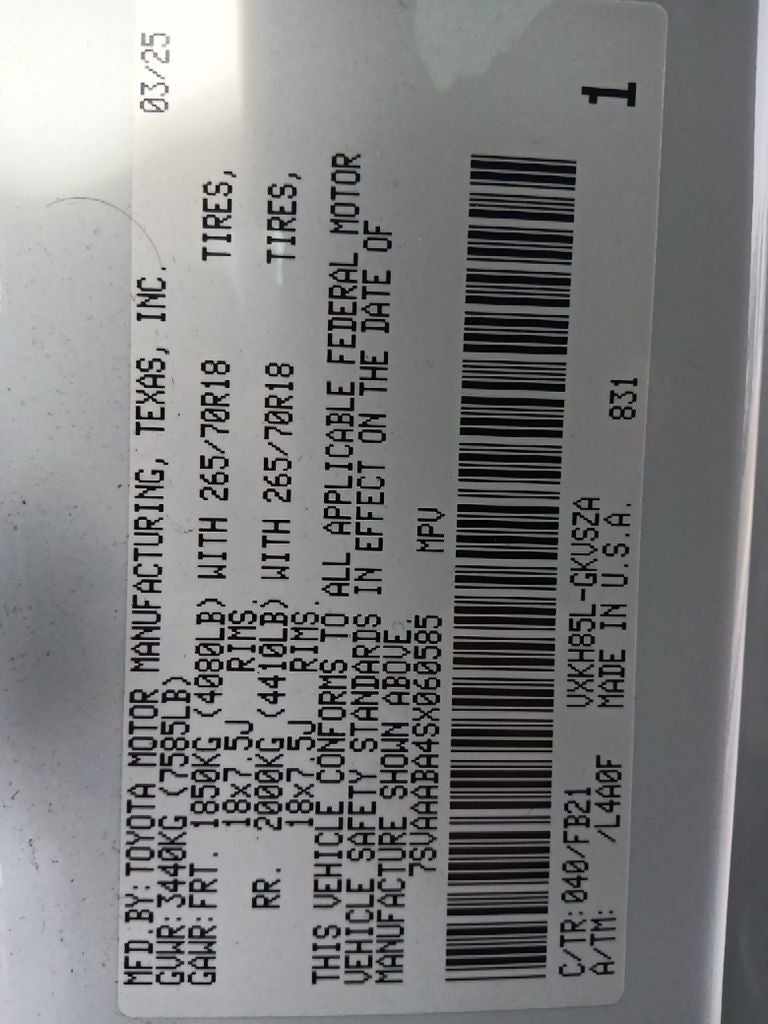 - Vehicle Name: Toyota Sequoia
